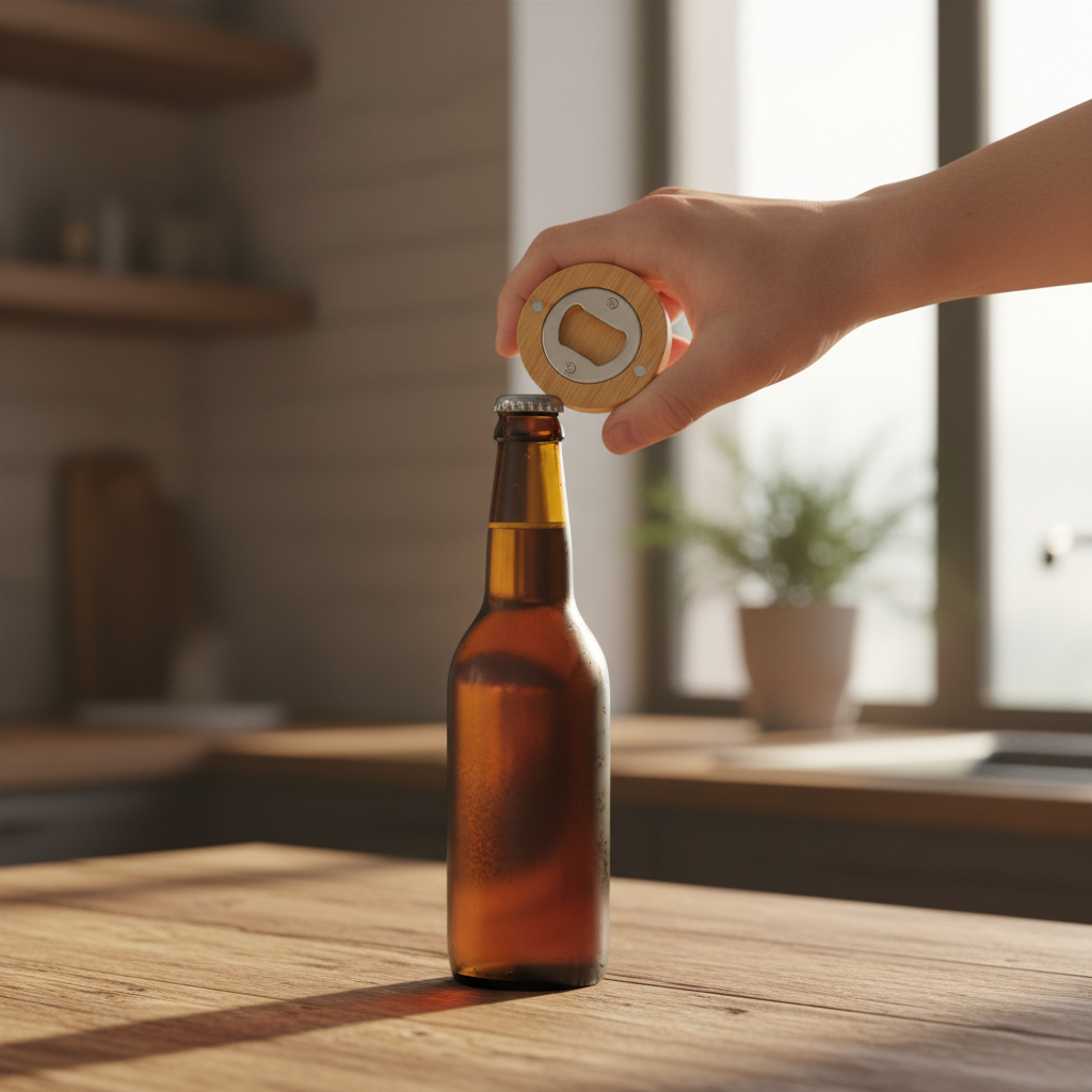 Entdecke unseren runden Flaschenöffner aus hochwertigem Bambus – der ideale Alltagshelfer für Zuhause, Partys oder als originelles Geschenk für Bierliebhaber. Dank des praktischen Magneten lässt sich der Öffner direkt am Kühlschrank befestigen, sodass er immer griffbereit ist.