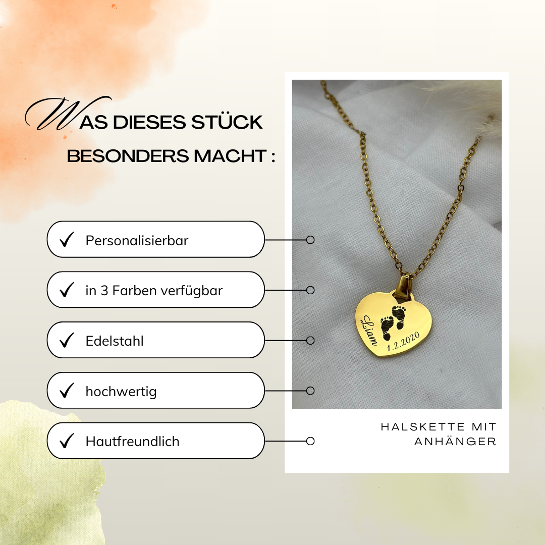 Geburts-Halskette aus Edelstahl mit Herzanhänger