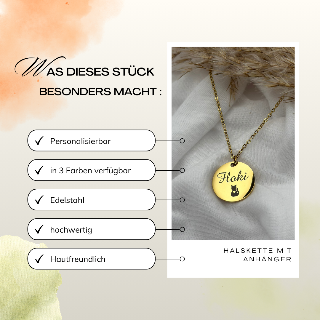 Unsere stilvolle Edelstahl (304) Halskette mit einem Münzenanhänger ist in den ansprechenden Farben Roségold, Gold und Silber erhältlich. Der 20mm Münzenanhänger verleiht diesem Schmuckstück eine einzigartige Note, ideal für alle, die ihre Liebe zu ihren Haustieren modisch ausdrücken möchten. Diese Kette ist perfekt für Hunde- und Katzenliebhaber, die ein stilvolles und dennoch bedeutungsvolles Accessoire suchen.