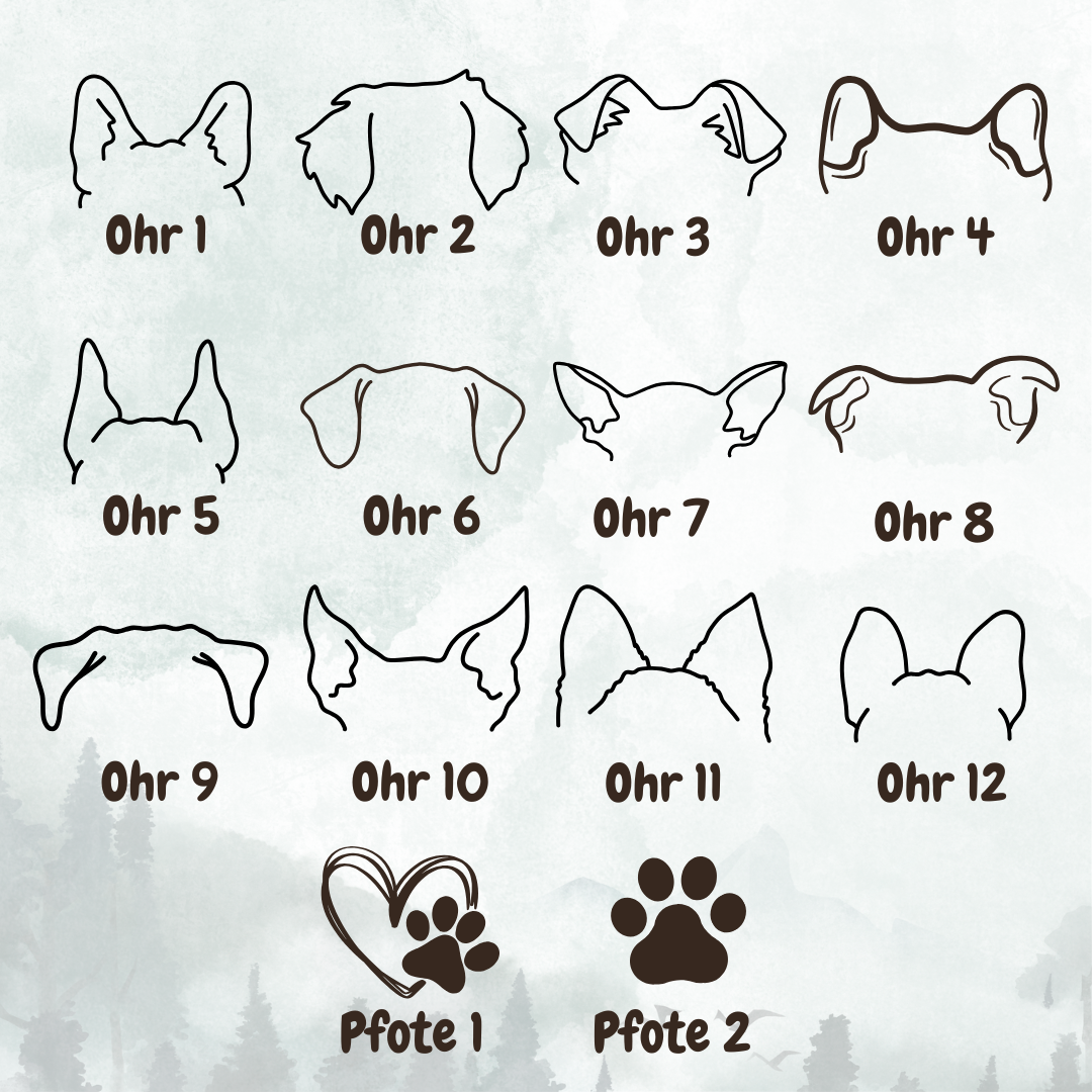 - Gravur von 2× Pfoten oder 12 Hundeohren-Motiven