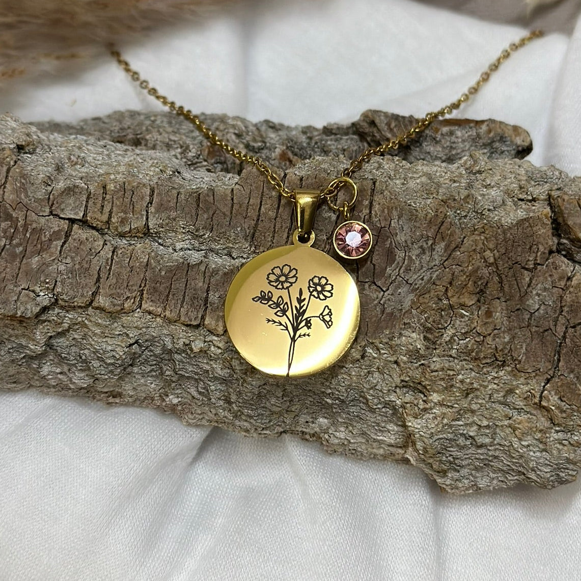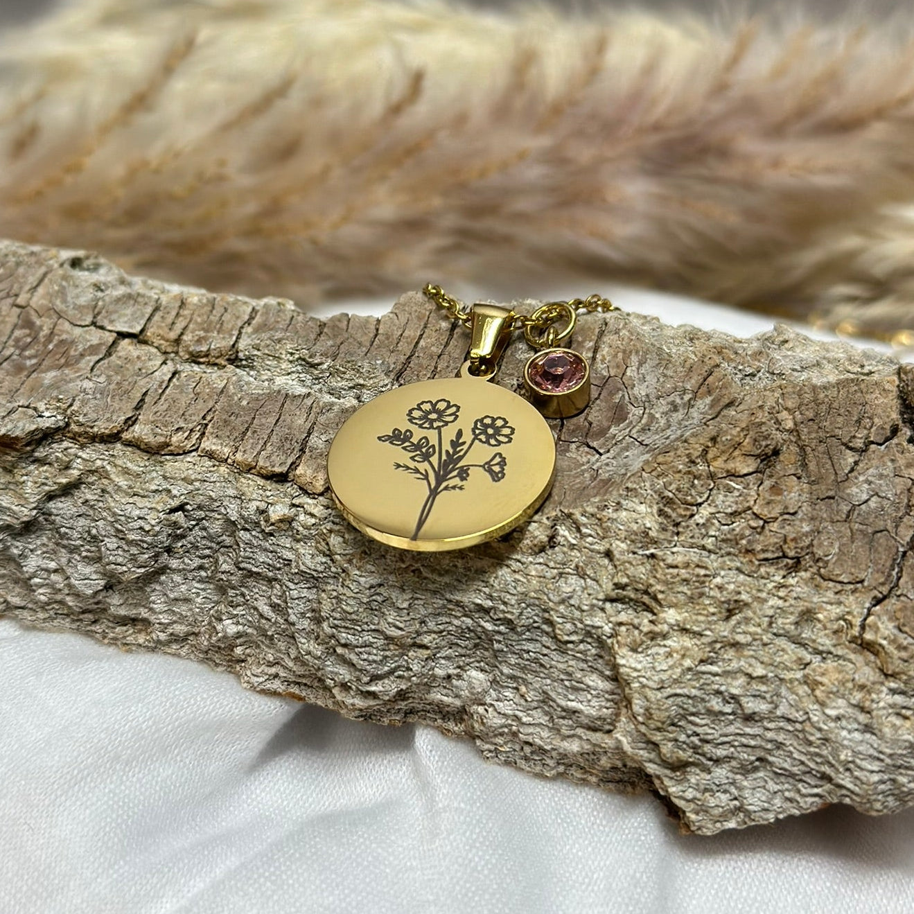 Personalisierte Halskette – Geburtsblume & Geburtsstein
