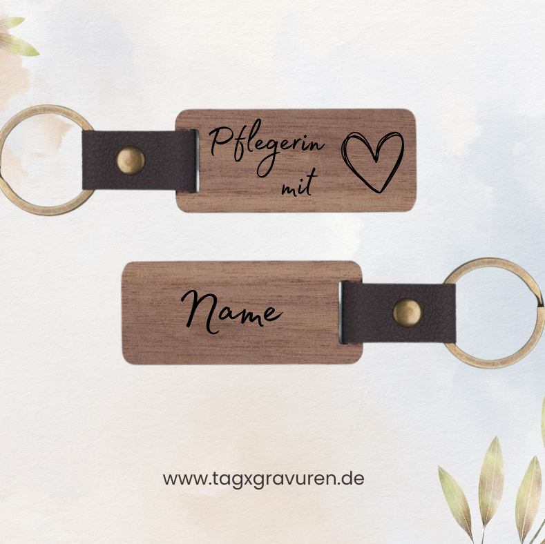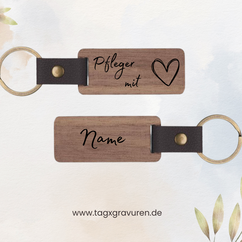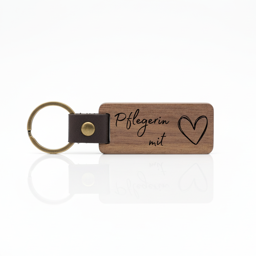 Zeige Wertschätzung für Pflegekräfte mit diesem rechteckigen Schlüsselanhänger aus hochwertigem Walnussholz. Handgefertigt und elegant, symbolisiert er Dankbarkeit, Fürsorge und die besondere Rolle von Pflegekräften im Alltag. Das warme Walnussholz und seine natürliche Maserung machen jeden Anhänger zu einem stilvollen und langlebigen Accessoire.